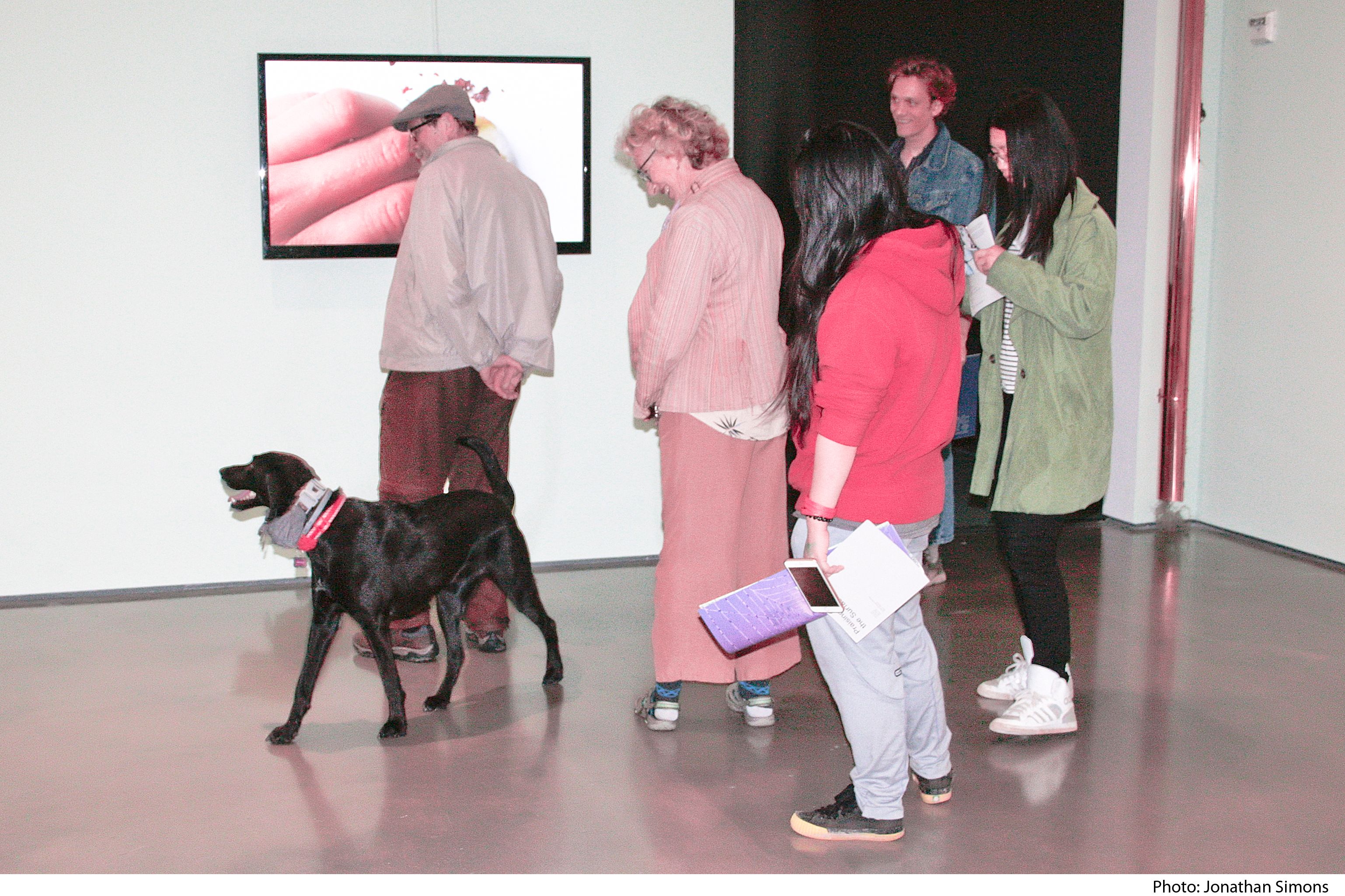Roughing It II was performed within Adriana Bildaru's curatorial thesis show at the Hessel Museum. Her show, Mother lode, examines the coporeal delivery and embodiment of language, as well as its visual properties in order to undermine its discursive construction. In reviewing this materiality of language, the exhibition draws out an affective potential to create connections between individuals.